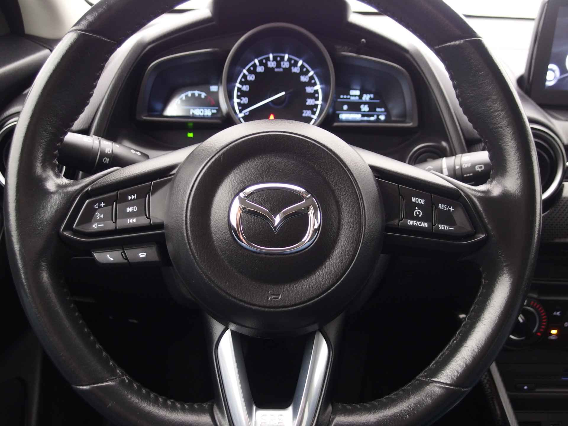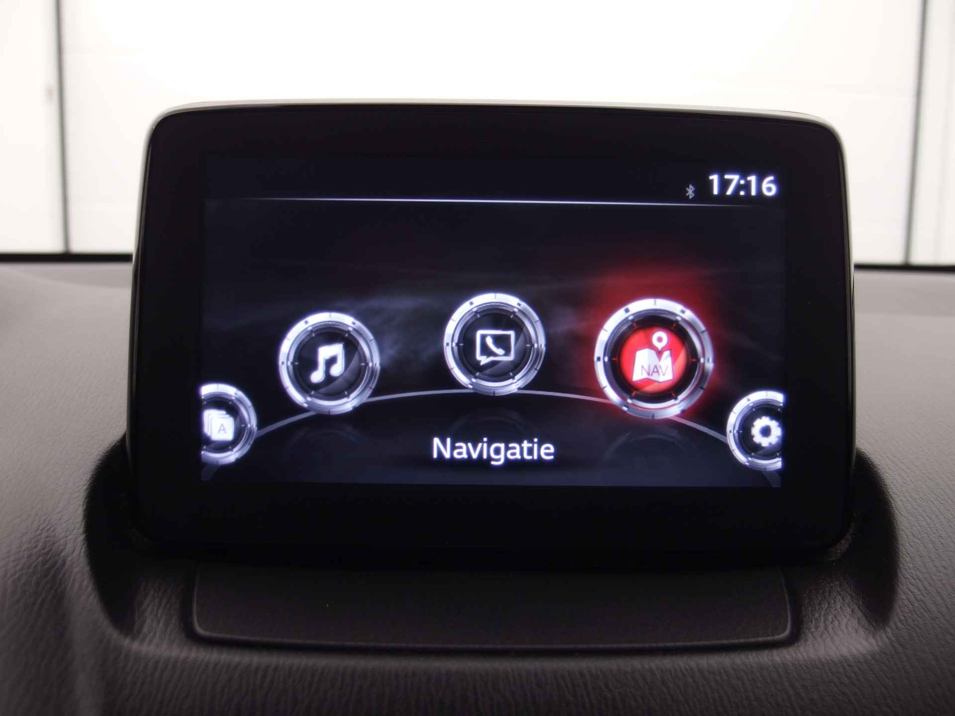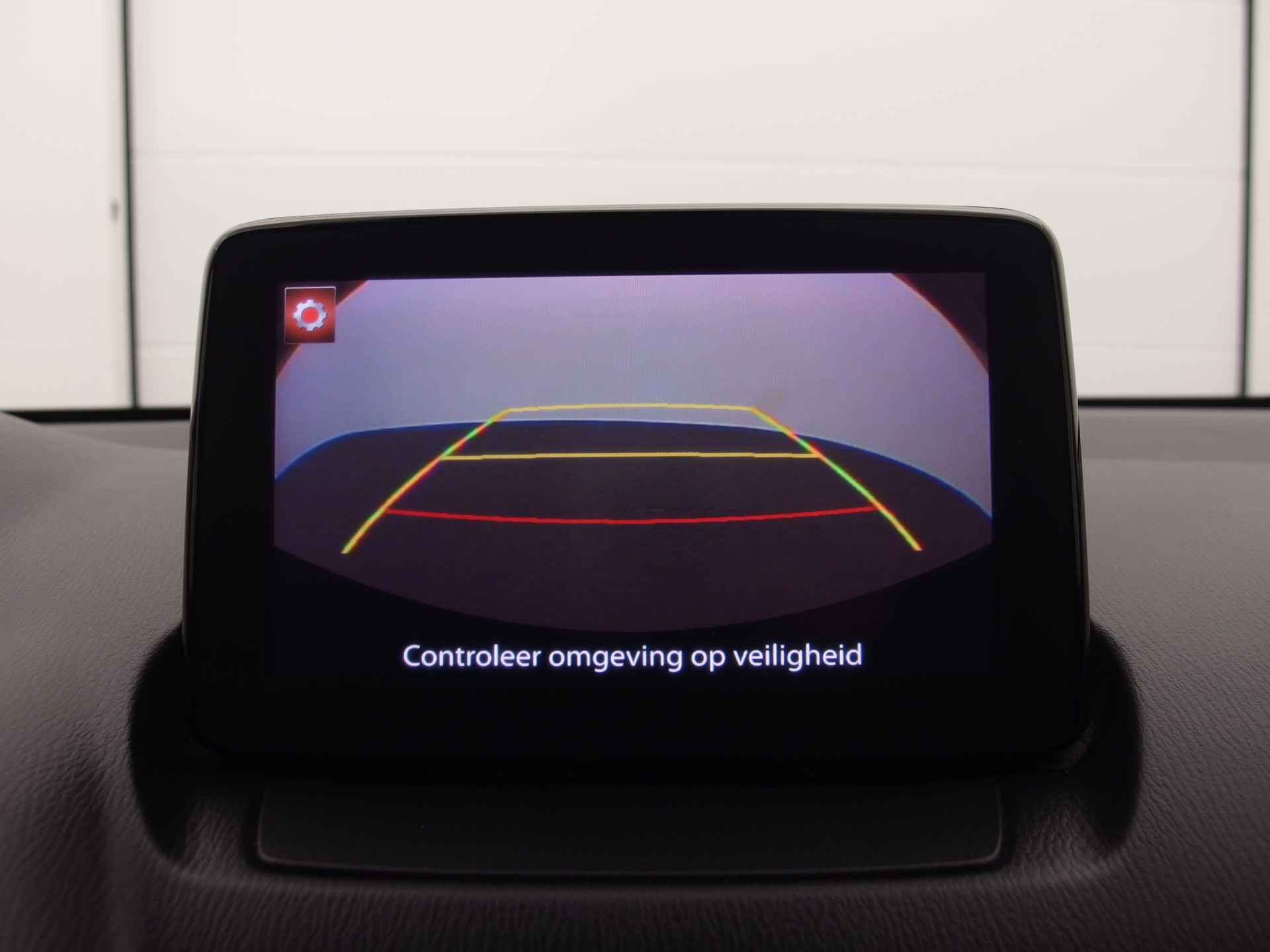Met de achteruitrijcamera ziet u precies wat er achter de auto gebeurt. Een veiligheidsverhogende optie is de ingebouwde spraakbediening. Terwijl u uw ogen op de weg houdt, bedient u de auto met uw stem. Beste route, verwachte aankomsttijd: uw eigen full map navigatiesysteem vertelt u alles! De achteropkomend verkeer waarschuwing bewaakt de afstand tot achterliggers en geeft een signaal als er te weinig ruimte is. Met de DAB-ontvanger luistert u naar glasheldere digitale radio. Ook is de Mazda uitgerust met: cruise control, airconditioning, lederen stuur, isofix-aansluiting, centrale deurvergrendeling met afstandsbediening en boordcomputer.