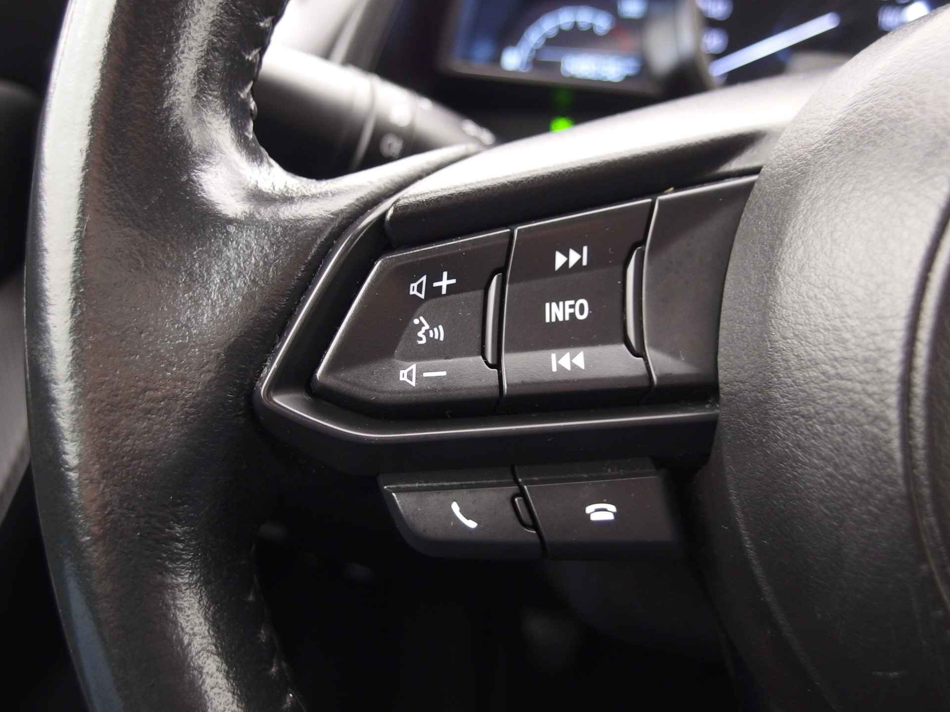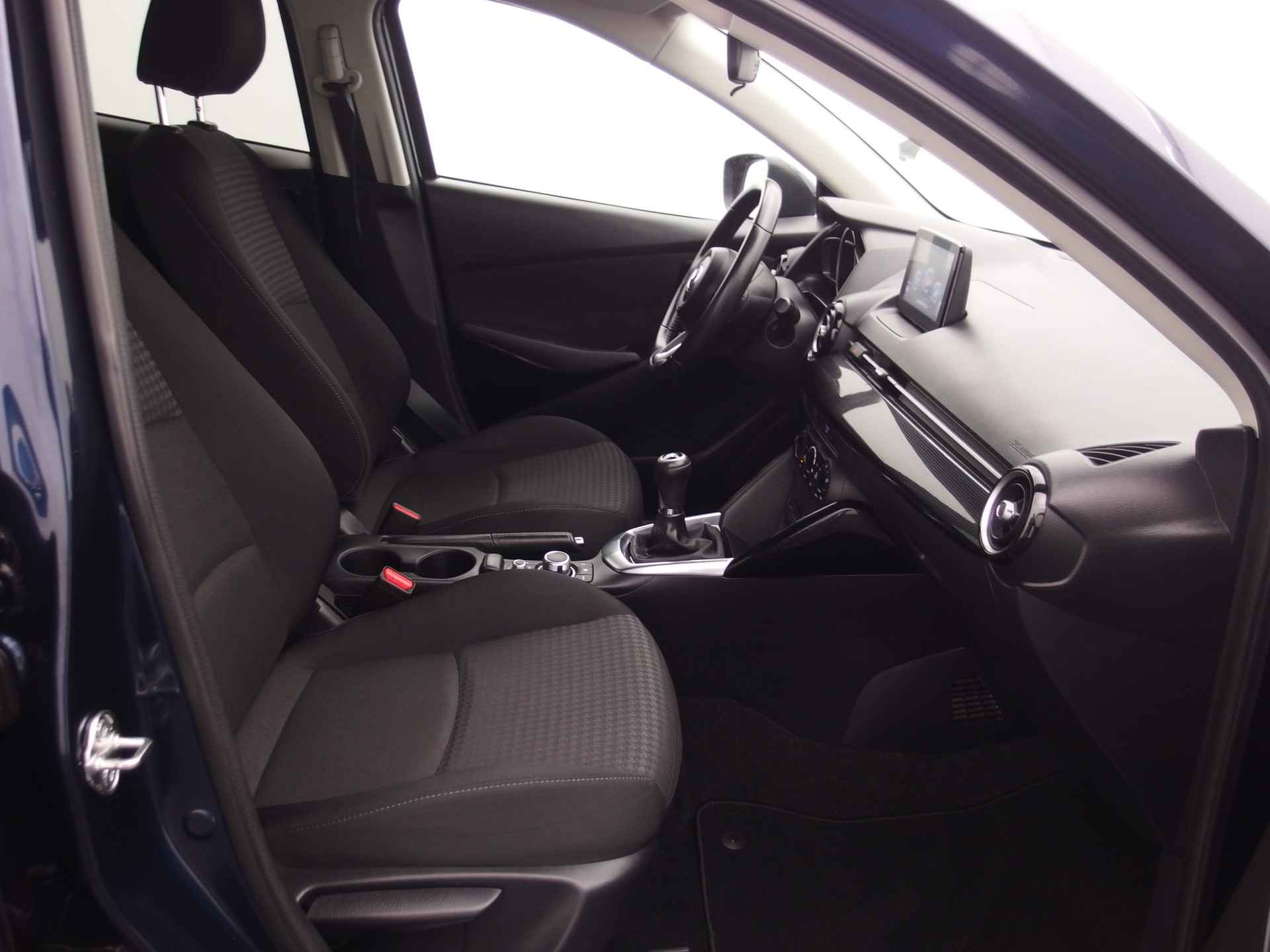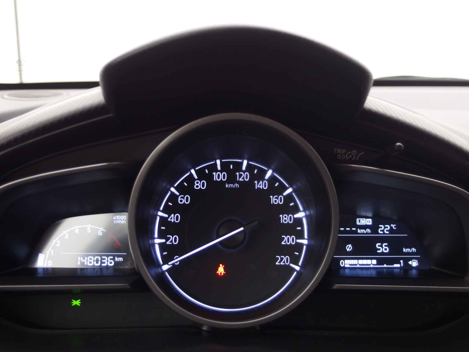 Met de achteruitrijcamera ziet u precies wat er achter de auto gebeurt. Een veiligheidsverhogende optie is de ingebouwde spraakbediening. Terwijl u uw ogen op de weg houdt, bedient u de auto met uw stem. Beste route, verwachte aankomsttijd: uw eigen full map navigatiesysteem vertelt u alles! De achteropkomend verkeer waarschuwing bewaakt de afstand tot achterliggers en geeft een signaal als er te weinig ruimte is. Met de DAB-ontvanger luistert u naar glasheldere digitale radio. Ook is de Mazda uitgerust met: cruise control, airconditioning, lederen stuur, isofix-aansluiting, centrale deurvergrendeling met afstandsbediening en boordcomputer.